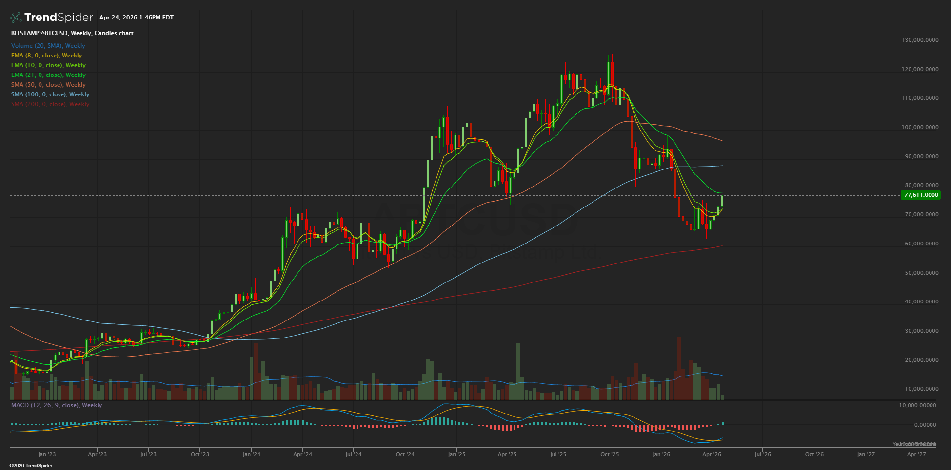 Bitcoin tried to push through the 21-week EMA but has been rejected so far. Until it’s over the 21 EMA, the bull trend remains unconfirmed.